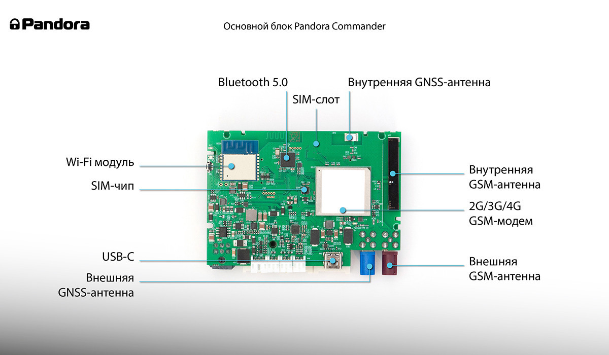 Охранно-телематическая система Pandora Commander Фирменный разработана на новой программно-аппаратной платформе FX и оснащена современным многодиапазонным GSM-модемом с поддержкой сетей 4G, 3G и 2G. В составе комплекса предусмотрены модули Wi-Fi и Bluetooth 5.0, а встроенная GPS/ГЛОНАСС-антенна обеспечивает точное определение местоположения автомобиля без установки внешних антенн.