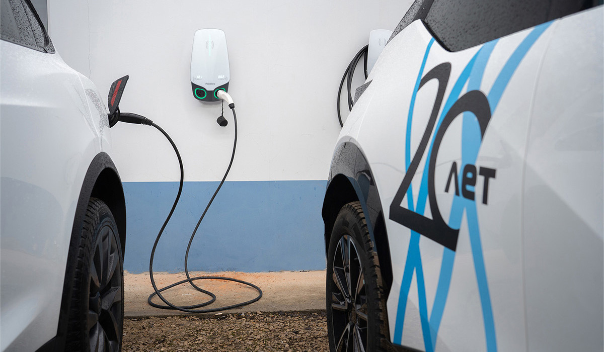 заряд двух автомобилей с автоматическим распределение мощности в