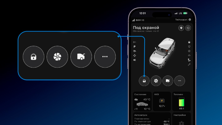По отзывам пользователей разработчики переработали интерфейс: кнопки управления стали крупнее и контрастнее. После запуска двигателя на экране появляется дополнительный виджет, отображающий обороты, температуру и оставшееся время работы двигателя. При необходимости время работы можно продлить на 10 минут одним касанием.