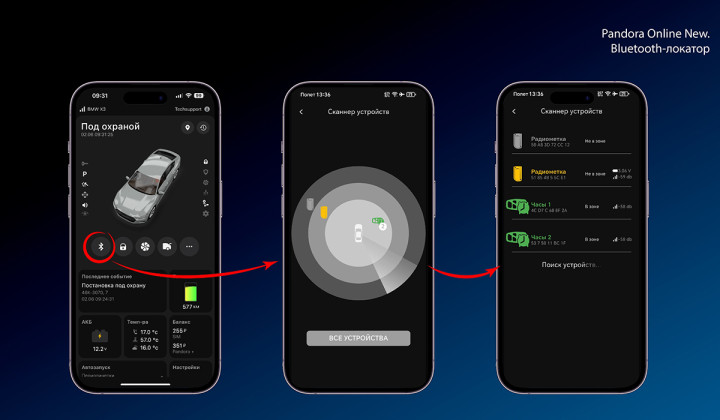 Обновлён интерфейс отображения Bluetooth-устройств Pandora: теперь можно видеть все аксессуары, прописанные в систему, их расположение по уровню сигнала, серийные номера и состояние элементов питания.
