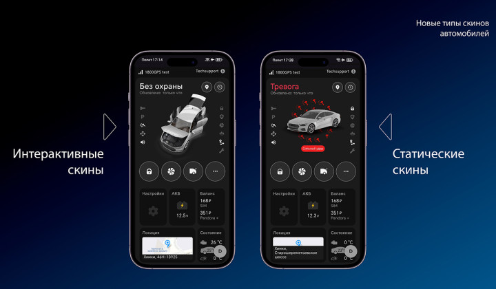 С учётом пожеланий пользователей добавлены новые варианты визуализации автомобилей. Помимо динамических 3D-скинов теперь доступны статические модели с упрощённым отображением команд и тревожных событий.